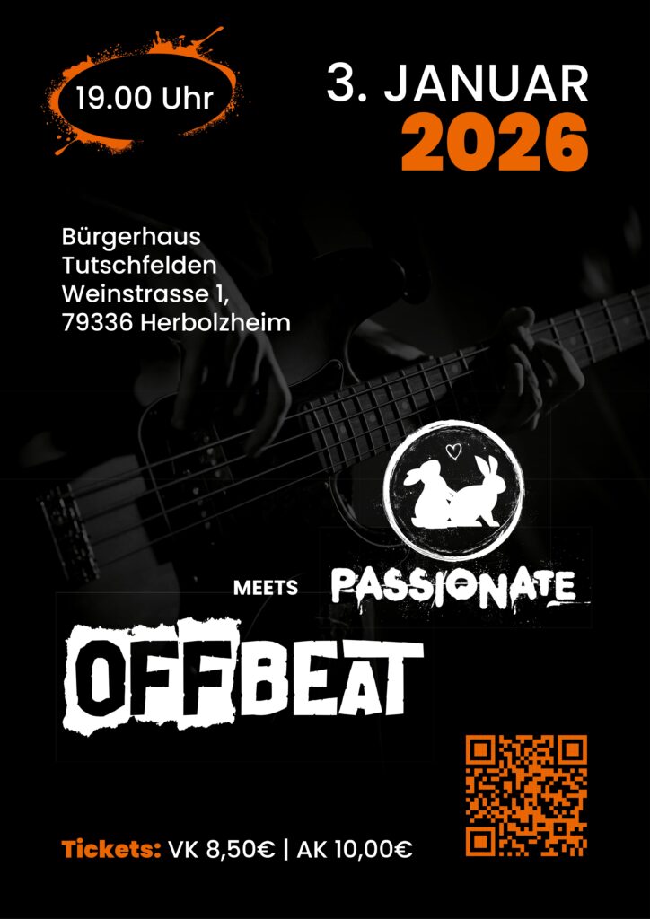 🔥 Save the Date: Passionate rockt die Bühne! 🔥 Macht euch bereit für einen energiegeladenen Abend, denn Passionate wird am 3. Januar 2026 die Bühne rocken! Wir freuen uns riesig, als Special Guest für die großartigen OFFBEAT aufzutreten, die dieses unvergessliche Konzerterlebnis organisieren. Seid dabei, wenn wir ab 19:00 Uhr die Location zum Beben bringen […]
